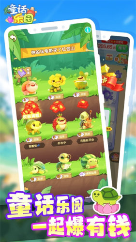 童话乐园是一款拆卡包对对碰解压类的益智游戏,游戏中玩家将要通过拆盲盒卡包的玩法设计来进行闯关挑战的,这个游戏需要你先去拆开里面提供的盲盒卡包获得乌龟来进行对对碰获取金钱奖励,利用拆到的乌龟把相同颜色的到收集起来兑换奖励,使用提现功能还可以给玩家带来赚取现金的闯关过程体验。