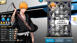 4、想换个角色?在战斗准备界面,点击"切换按钮"可以切换角色哦,朽木露琪亚现在已经失去了死神的能力,在朽木露琪亚力量恢复之前帮她完成死神的任务;