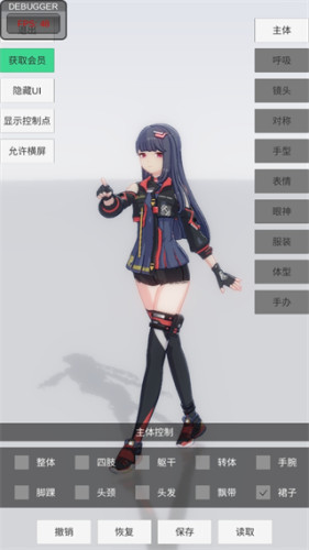 3、支持多个手办同时出现,并提供服装、皮肤、肌肉、骨骼四个层次的画面显示,方便用户进行细致的调整。