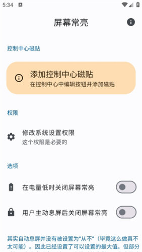 屏幕常亮app是一款可以使用户的手机一直维持在亮屏状态的安卓软件,目前的手机设备都会设置在无操作一定时间内息屏,这很容易让用户错过一些重要信息。只要使用这款app就可以避免这种情况,并且目前app已经完全适配了安卓14+的操作系统,兼容性提升。