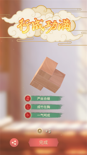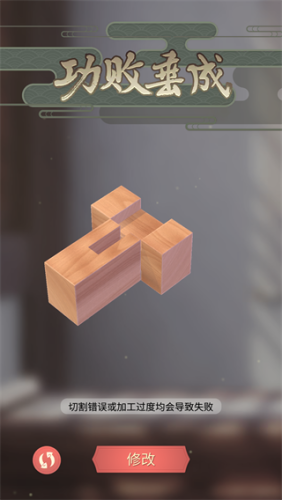3、游戏开始玩家们有着有一个游戏目标就是通过精巧细腻的加工,使两块木结构之间严密扣合,达到“严丝合缝”的完美结合程度;