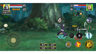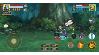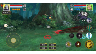 2、通过使用右侧的虚拟键位,玩家可以打出各式各样的忍术攻击,当然每个忍术都是有冷却时间的。