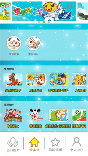 2、进入软件首页即展现绘本馆。在热门绘本区域,点击选择孩子心仪的绘本开始阅读。