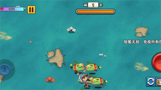 在游戏里还可以通过使用道具来帮助,获得短暂的保护罩挡攻击,使用操控按键移动角色射击;