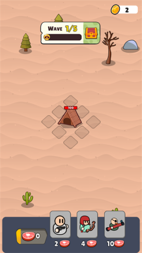 3、2块,4块,10块牛排,玩家们消耗的牛排越多就可以召唤更加强大的角色,从伤害较低的手枪,再到弓箭,最后到火箭筒,击败游戏里的所有敌人;