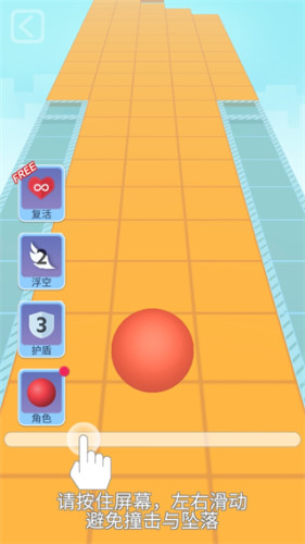 1、第一关“云”的场景中,没有很多的障物物,玩家控制小球沿着地面的路线一直移动即可,不要碰到两侧凸起的方块。