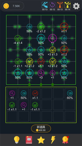 放置光学是一款利用物理光源的方式来放置合成类的益智游戏,这个游戏中需要玩家按照里面提供出来的道具来进行合成,通过把道具移动到合适的位置中,再去查看会出现光的位置,使用点击让光穿梭在各个道具中去进行合成消除,完成利用点击去获得金币的目标任务的挑战,就代表挑战成功获得胜利。