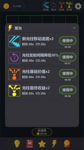 3、在闯关的过程中玩家还需要注意里面提供的各种镜面,都有不同的使用功能,比如放大镜光束通过后会被加强,光束价值增加。