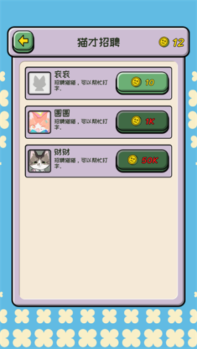 无限猫猫计划是一款十分有趣的休闲益智手游,游戏里玩家们需要聘请游戏里的猫猫,让游戏里的猫猫为了游戏里的计划而努力,游戏里玩家们还可以为猫猫进行升级,增强猫猫的能力。