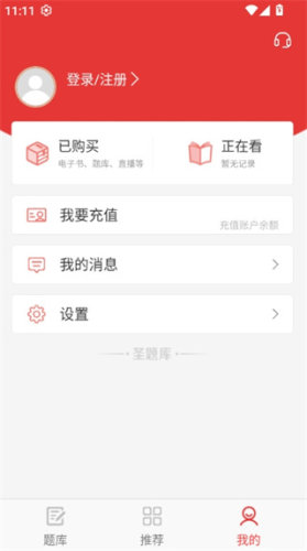 2、进入大学生英语竞赛圣题库app主页后,点击右下角我的页面。