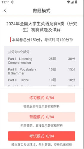 大学生英语竞赛圣题库app拥有庞大的题库资源,包括历年真题和模拟试题。这些题目经过精心编排和分类,方便用户进行有针对性的练习。