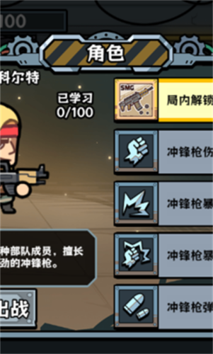 1、打开游戏界面先去点击开始游戏,就可以直接进入到关卡里面,然后按照闯关的顺序来进行战斗,选择好战斗时需要的武器装备。