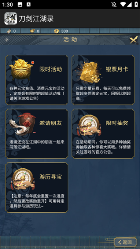 2、游戏里玩家们获取资源的方式十分丰富,在任务界面玩家们可以随意接取任务,完成任务获取丰厚的奖励,享受刀剑江湖,丰富的门派还有武林秘籍随意修修炼,增强实力;