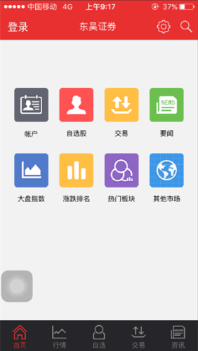 1、首先下载并打开东吴证券同花顺app。先进行注册登录。登录成功后进入主界面,此时点击“我的自选”按钮。
