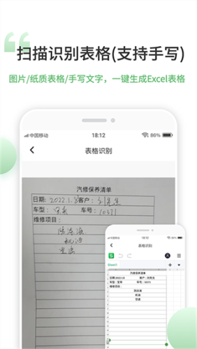 1、扫描文件做表格:只需扫描文件中的表格区域,即可一键生成表格,方便快捷。