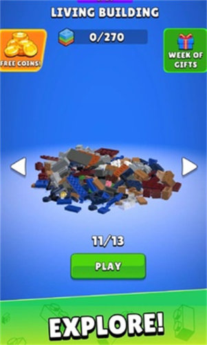 2、通过屏幕上把完整的积木拆除,再让玩家按照给出的积块去拼图,最后还原积木的样子就代表挑战成功,完成给出的人物挑战获取到丰富的金币奖励。