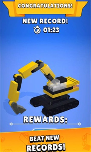 3、在闯关的过程中玩家还可以把积木按照拼图的方式,拼凑好就可以获得金币,还能去解锁戏新的物品积木来继续拼图,结束拼图去查看挑战用了多少时间。