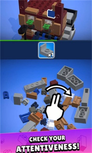 玩家可以按照里面展现出来的积木物品,先拆除打乱再去进行拼图,然后点击屏幕上的积木拼图;