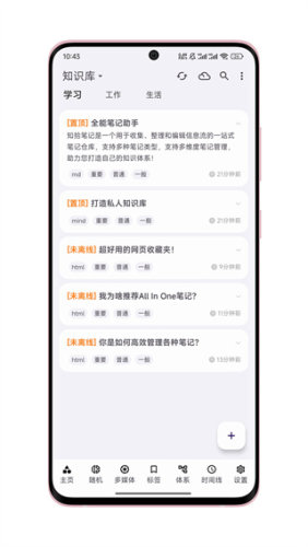 知拾笔记app可以帮助用户高效地收集、整理、编辑和回顾知识,软件中提供分类+标签扁平化分类管理,还支持树状图立体构建知识体系,包括随机阅读、时间线、标签、多媒体等多维度内容管理方式。并且支持多终端同步,用户可以在手机、平板和电脑上同步访问和编辑自己的笔记。