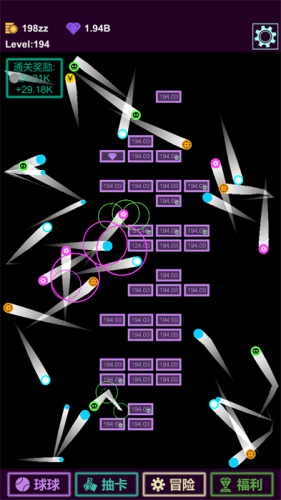 在游戏里还可以通过小球反弹的功能,帮助不断的撞击消除砖块,使用抽卡获取道具去增加数量;