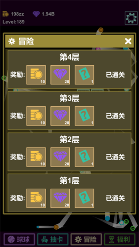3、在闯关的过程中玩家还需要注意消除砖块能获取到金币,使用金币可以去解锁增加小球的数量,完成关卡中给出的目标任务,才能去解锁下一层的闯关内容。