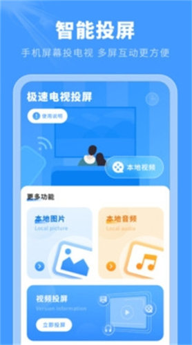 支持全格式的视频和图片进行投屏操作,用户可以将本地的音频和视频一键直接投屏到大屏幕上。用户在家中就能享受到影院级的观影效果。
