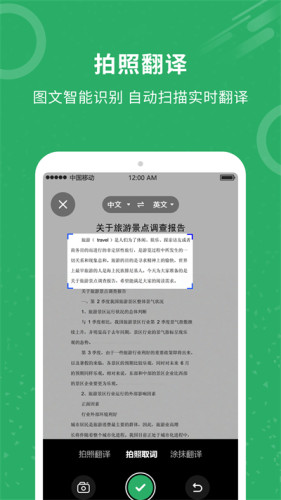 5、可以将需要翻译的内容进行拍照,通过拍照后对图片中的文字内容进行翻译。