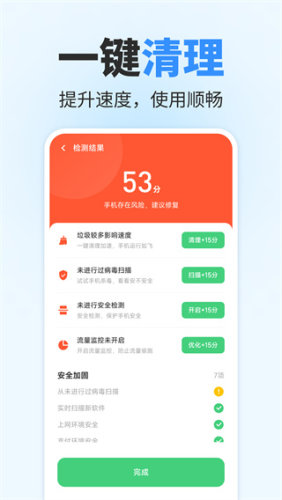 3、提供了多重安全防护,APP还可以帮助用户进行手机安全检测,帮助用户发现潜在的风险与病毒文件,避免手机损坏。