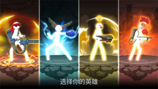 3、解锁不同职业火柴人,比如忍者、战士、枪手、魔法师等,都有独特技能,游戏有多种武器装备自由搭配。