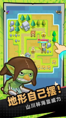 1、玩家可以策略性合理布局地块,巧妙利用各种特殊的卡牌引导勇者跑圈打怪赢取奖励;