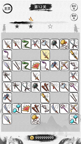 2、操作简单,快速上手,就算是新手也可以简单的完成挑战,轻轻地点击屏幕把相同的古代兵器消除掉;