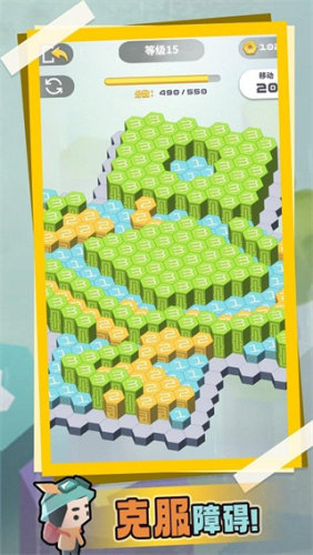 1、画面展现简单有趣的风格,简单的设计可以更容易观察到障碍的数量,提升效率在于完成关卡之中;
