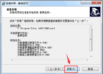 7、请用户选择在安装象棋巫师期间安装向导要执法的附加任务,有是否单关联便携式棋谱文件、关联局面文件、关联象棋演播室棋谱文件等,建议大家选择,点击“下一步”