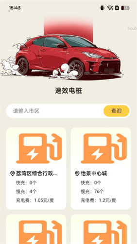 3、设有了快速充电桩查询,只需一键查找,就能定位周围最靠近的充电桩,解决能源车的电量消耗的问题,一键定位;