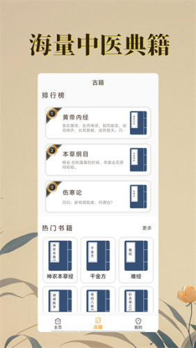 1、特别附上了各大名医的的古法书籍,如:本草纲目》《伤寒论》《千金方》《针灸甲乙经》等等,让用户可以阅读;