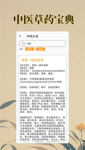 1、提供了全方面的中药知识,帮助用户解读不同中药的成分,帮助用户了解中药的营养以及好处,确保用药正确,药到病除;