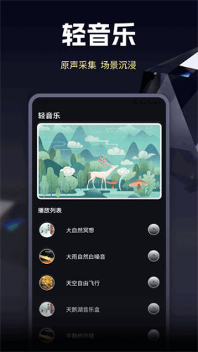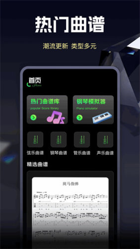 用户可以使用app里的钢琴模拟器进行演奏,还有海量的轻音乐让用户畅听,同时还可以根据需要调节音谱的速度,调整到最适合自己的节奏和音调。