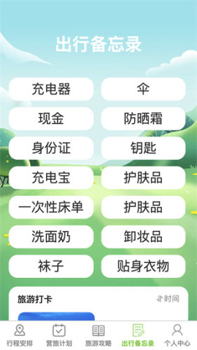 1、自定义自己的打包清单的记事本,让用户轻松在出行前打勾检查好装备以及必须品,确保万事俱备;