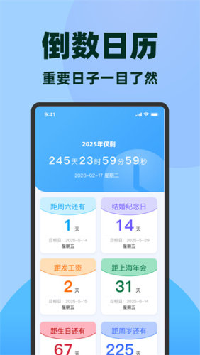 1、设有智能倒数提醒,只需添加关键的日期,不管是生日、纪念日等,APP将会根据所设置的日期进行倒数;