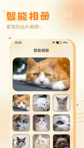 3、设有了智能猫咪相册,所有保存在手机里的猫咪照片,APP将会自动识别并创建属于用户与猫咪的相册,充满回忆;