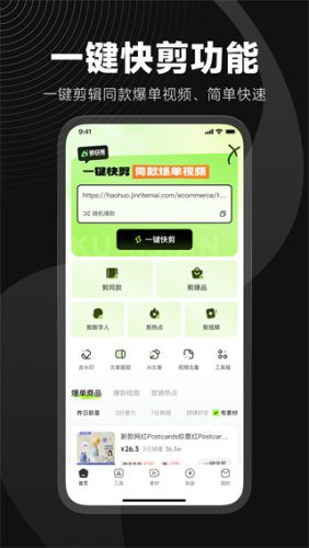 3、帮助用户在电商卖货,通过APP的智能短视频以及文案生成器,让用户更快速完成内容以及工作,十分高效。