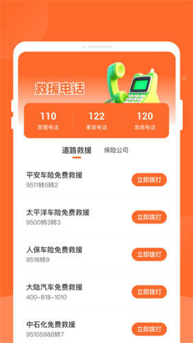4、设有了各种救援电话,包括道路救援以及保险公司,还有其他的急救电话等,让用户在紧急时刻可以求救。