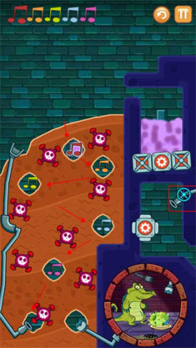 玩家需要通过消除水源前面的小空间,让鳄鱼们可以顺利的获得一定的水来进行洗澡。游戏目标就是把水引导到浴缸里,为此玩家需要尝试许多次才能进行破解到关卡。游戏中还有道具来帮助玩家们能够轻松地过关,这些道具都可以在游戏过程中得到许多的帮助。