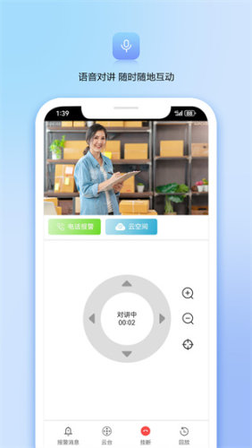 1、所提供的语音对讲的功能,用户可以通过APP发出语音,摄像头将自动把用户的语音发出;