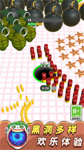 1、操作真的非常的简单,滑动就能控制黑洞移动真的是老少咸宜啊;