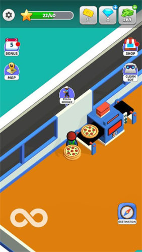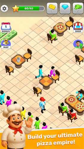 2、不断的扩大玩家的披萨店,玩家需不断的扩大店面就能够容纳更多的顾客,提升收入的来源数量;