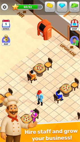 经营披萨店还是非常好玩的,有着不同的挑战性,玩家能够招募员工帮助玩家经营,让经营变得更加的轻松愉快。