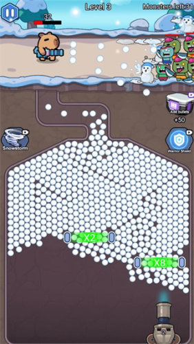 《雪球子弹倍增器》是一款能够给玩家带来了非常好玩的击杀敌人的游戏,玩家能够使用雪球击杀敌人,击退敌人是非常具有挑战性的,提供了很多很多的雪球能够使用,能够尽可能的制作更多的雪球进行战斗,需要不断的击杀所有的敌人才能够通过关卡,升级自己的武器击杀敌人,让装备能够提升自己的战斗能力,还是有着技能能够使用,更加有效的击杀怪物,大量的关卡成为一个强大的敌人击杀者。