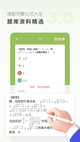 3、很多高中的数学的考题都是能够在使用的时候发现的,像是不同的难度的考题核心,都是能够在软件当中寻找到的数学题。