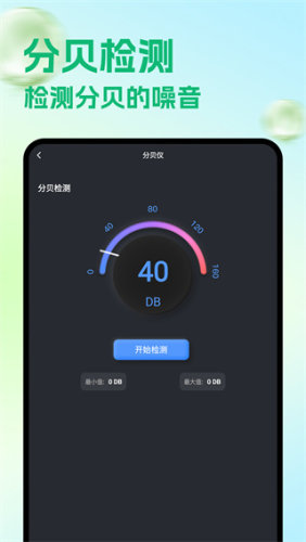 3、设置了分贝检测的功能,随时随地进行音量分贝的检测,从0分贝到160分贝,让用户即开即检测。